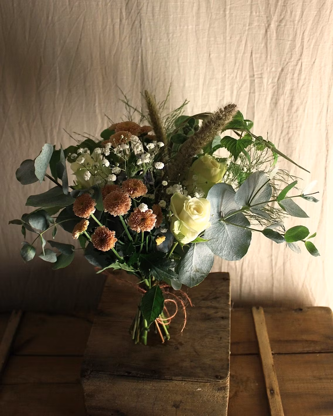 Här skapar våra skickliga florister en bukett i mjuka, ljusa toner. En klassisk bukett att ge till någon du bryr dig om; kanske någon som fått ett nytt jobb eller som du vill visa att du tänker på.